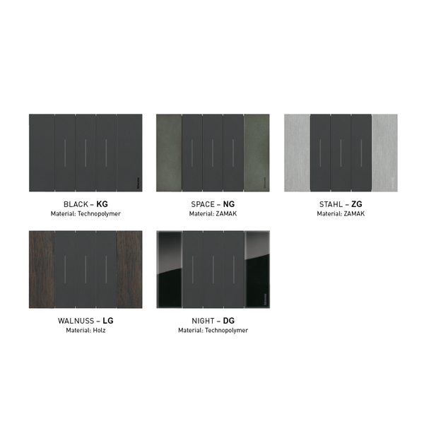 • 3 Farben für die Abdeckungen: Die Abdeckungen, wie z. B. Wippen und Steckdosenfrontblenden, sind in 3 verschiedenen Farben erhältlich: White, Sand und Black. Die satinierte Oberfläche sorgt für ein angenehmes Bediengefühl.